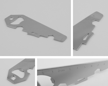PAINT TIN OPENER NO. 7299-E back back forward forward Measure / Material: approx. 11,7 cm,  stainless steel Functions: paint tin opener, 3 different  openers for paint cans, square, 10 mm &  13 mm spanner, ruler with cm or inch,  bottle opener  MADE IN SOLINGEN/GERMANY Contact Legal Notice Privacy Policy DUISBERG production